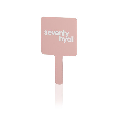 The mirror is sleek and stylish, with the Seventy Hyal 2000 logo printed on its surface, serving as a reminder of the exceptional injectables you offer. Perfect when showing your clients' their glowing results.