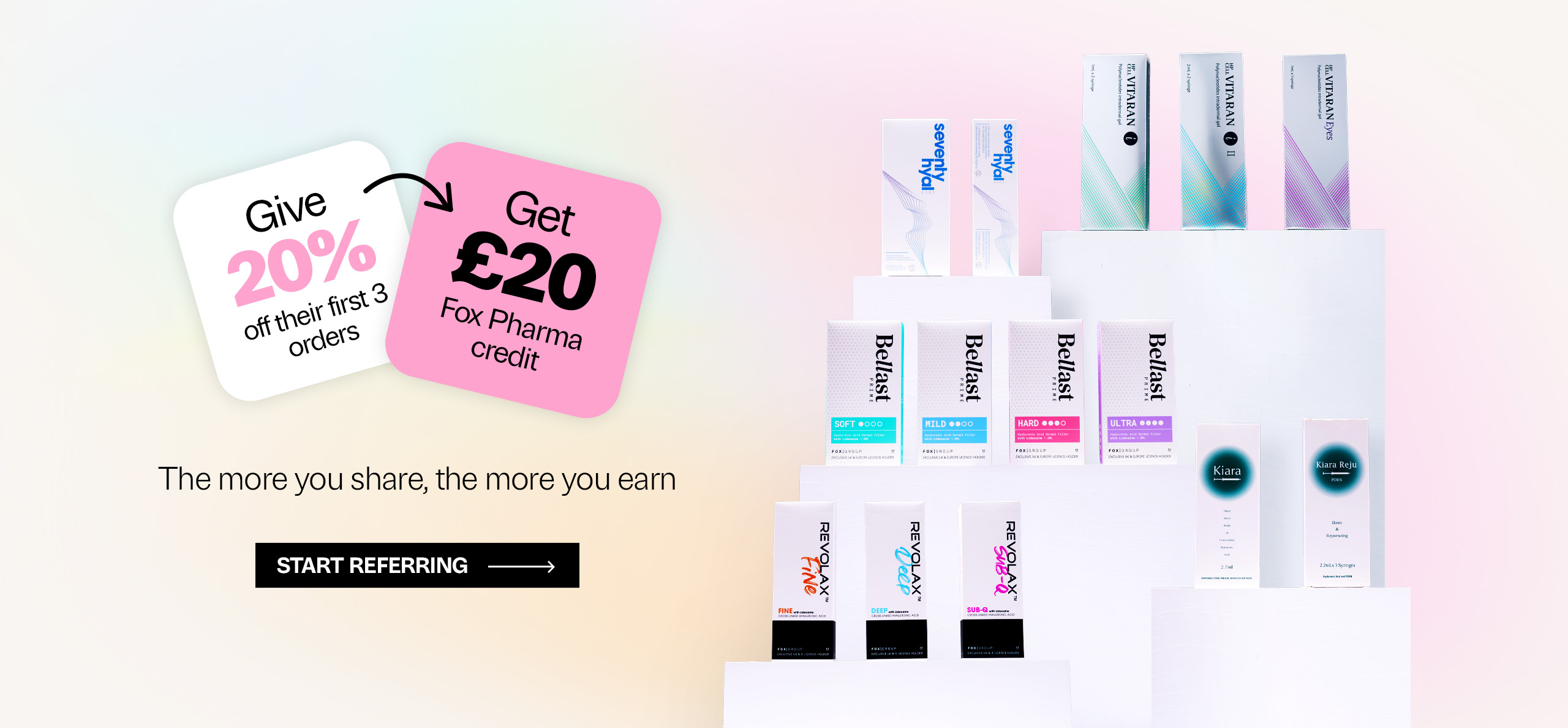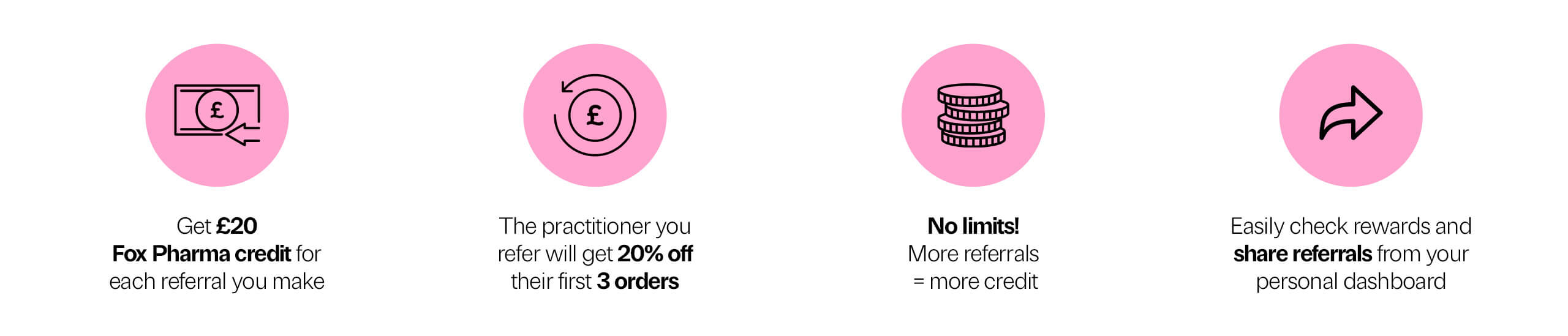 Refer a practitioner and treat them to 20% off their first 3 orders and get £20 off for yourself. Spread the word and earn rewards with Fox Pharma.