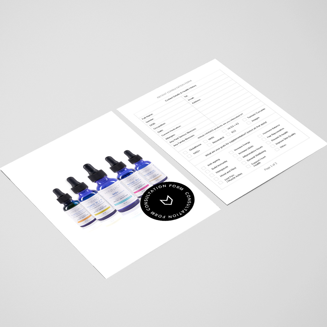 Login to purchaseThe HINNAO Patient Consultation Form is the perfect way to gather information on your patients health history while learning about their goals for supplementation. Receive a free downloadable Patient Consultation Form with your order, simply checkout and the form will be added to your email confirmation for you to download.